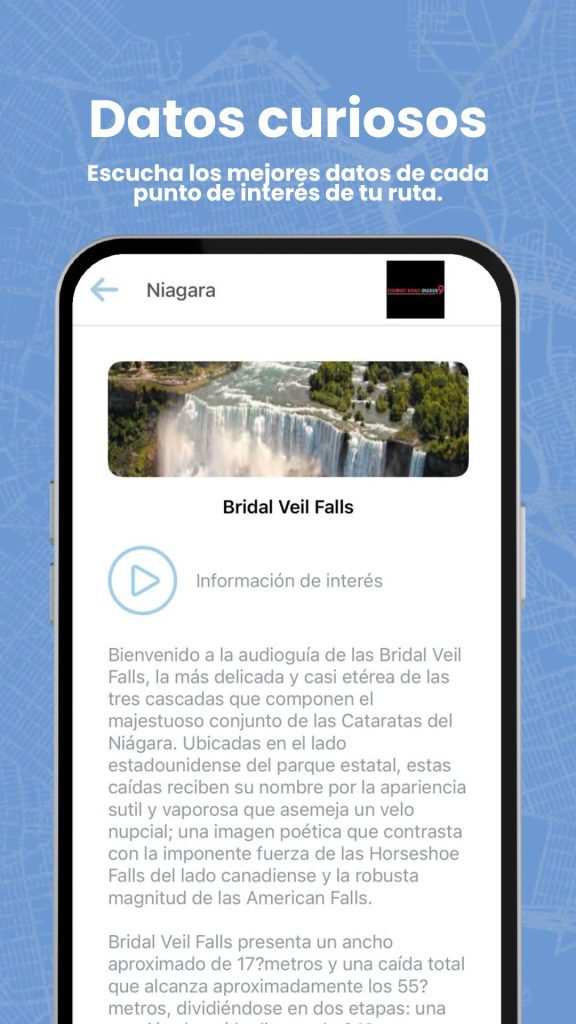 La app de road trip con audioguías GPS activa automáticamente el contenido según tu ubicación. De esta forma, puedes aprender sobre el entorno, la historia y las curiosidades del lugar mientras conduces, sin distracciones.