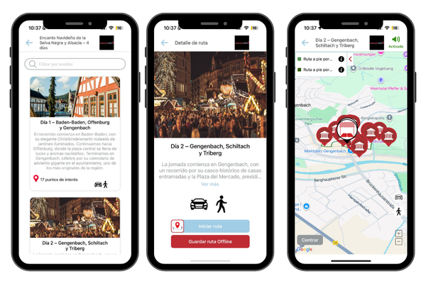 A través de la app de Tourist Road Guides, disfrutarás de explicaciones narradas, curiosidades y tradiciones que dan vida a estos lugares mágicos. Conoce la historia del vino caliente Glühwein, las galletas de jengibre, los adornos artesanales y las leyendas que envuelven cada mercado, mientras paseas entre luces y sonrisas.