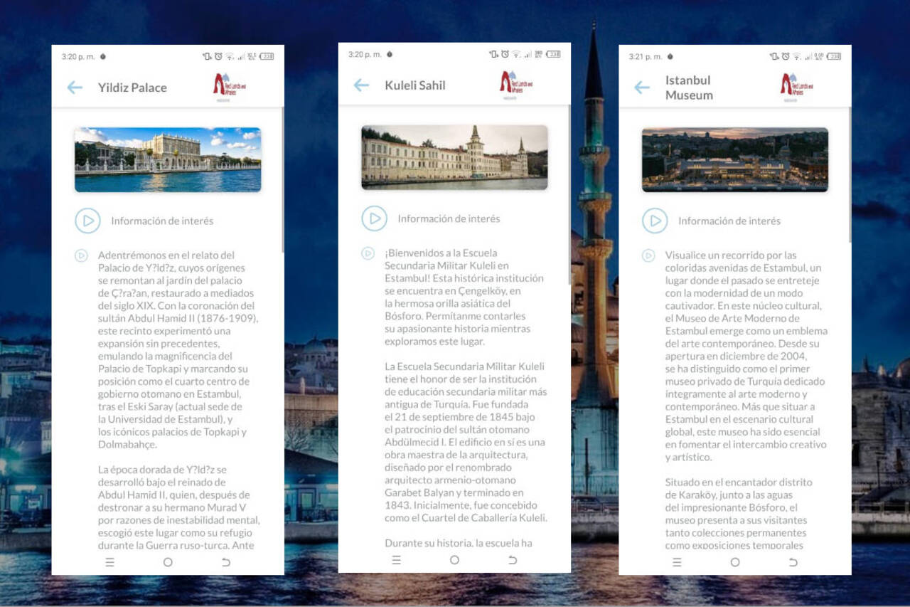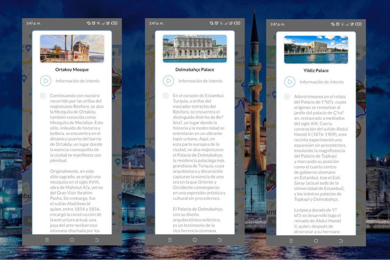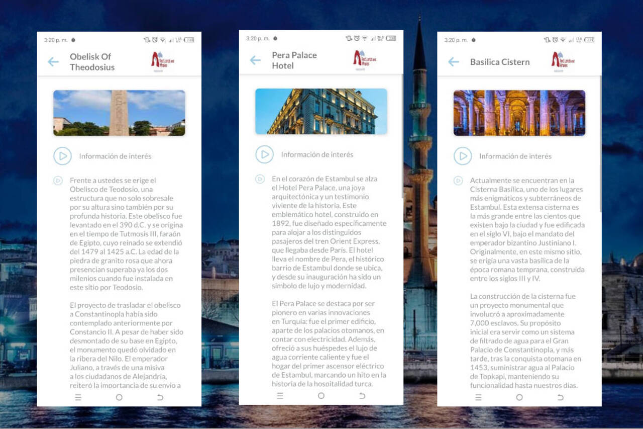 Nuestra App Audioguia Estambul brinda una excelente y placentera experiencia a cada visitante. Diseñada para ofrecer información detallada y entretenida sobre los lugares de interés de la ciudad.