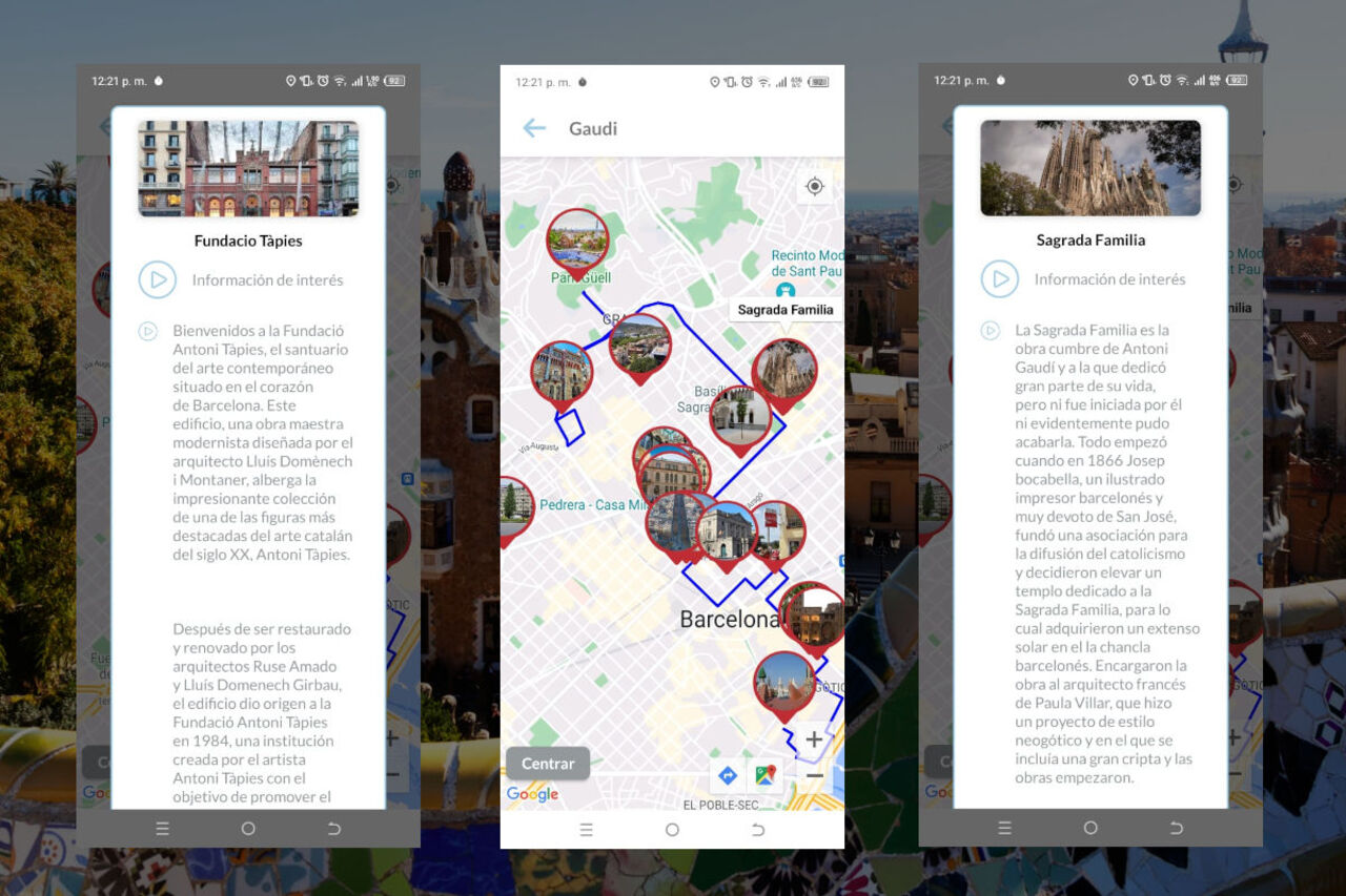 Imágenes de la App Audioguia Gaudí