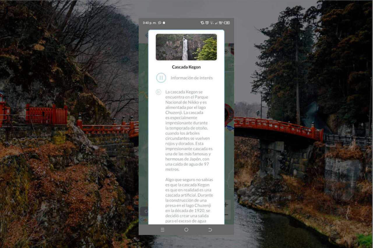 Sí, nuestra aplicación de audioguía incluye mapas interactivos que muestran la ubicación de los lugares turísticos, restaurantes recomendados y otras atracciones cercanas. Esto te ayudará a navegar y descubrir nuevos lugares mientras exploras una de las prefecturas más lindas de Japón.