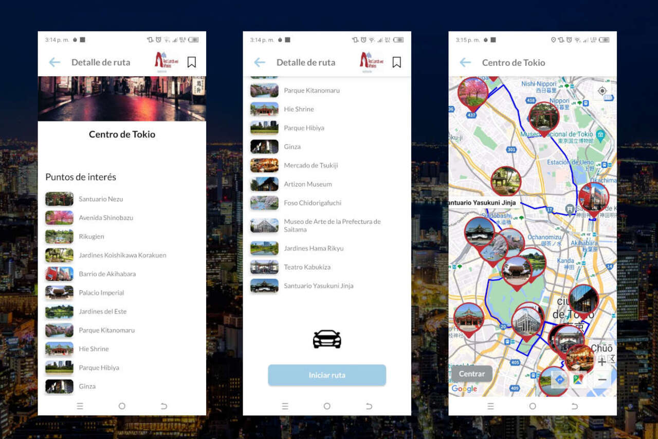 – CENTRO DE TOKIO: También con información audioguiada de los principales puntos de interés del centro de Tokio como: Santuario Nezu, Avenida Shinobazu, Rikugien, Jardines Koishikawa Korakuen, Distrito de Akihabara, Ginza, Jardines del Este, Parque Kitanomaru y otros puntos de interés. Este tramo contiene una ruta en coche para el mayor disfrute de estos barrios como BUNKYO, CHIYODA Y CHUO.