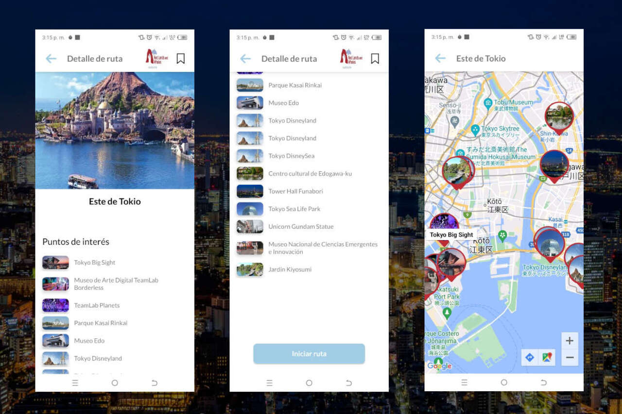 – ESTE DE TOKIO: Contiene 14 puntos de interés audioguiados correspondientes a los barrios de Edogawa y Koto. Puede comenzar un recorrido en automóvil por los principales sitios de esta sección, como: Tokyo Big Sight, TeamLab Planets, Edo Museum, Tokyo DisneyLand y Tokyo DisneySea. También visitará el Salón de la Torre, Funabori y el Jardín Kiyosumi.