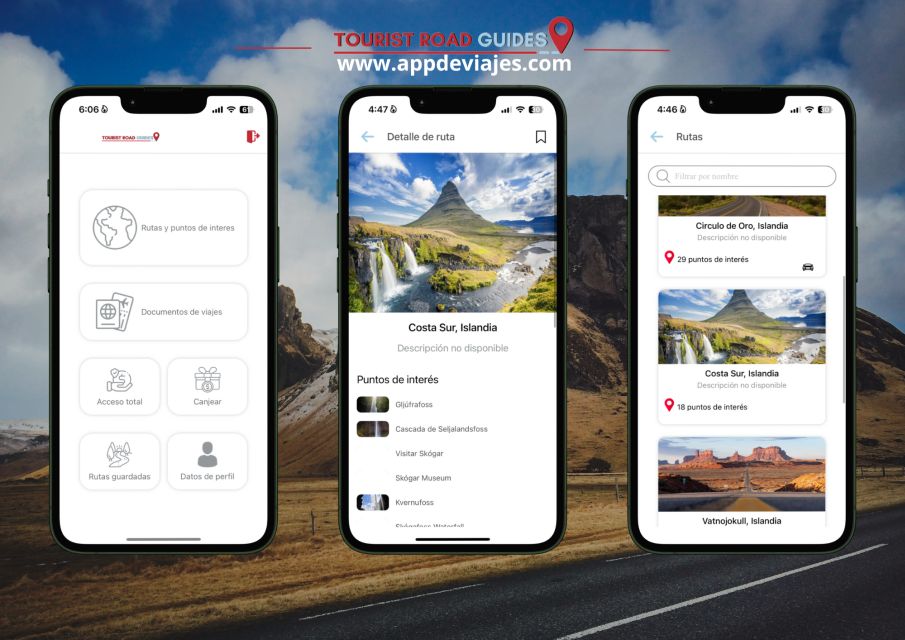 Puedes descargar la App de Tourist Road Guides desde las tiendas de aplicaciones de iOS y Android. Simplemente busca la app y sigue las instrucciones para descargarla en tu dispositivo móvil, luego canjeas el código enviado por la compra.