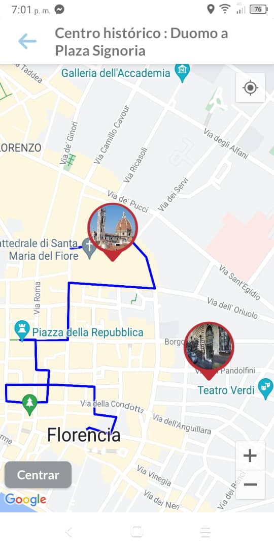 La App Audioguía Florencia, es una herramienta completa que ofrece una amplia gama de características y ventajas para los viajeros que desean explorar Florencia de manera efectiva. Esta aplicación incluye una extensa lista de puntos de interés, que abarca desde las famosas atracciones turísticas hasta los tesoros ocultos menos conocidos de la ciudad. Cada lugar está acompañado de una detallada descripción histórica y cultural, enriquecida con narraciones cautivadoras que sumergen al usuario en la esencia de Florencia.